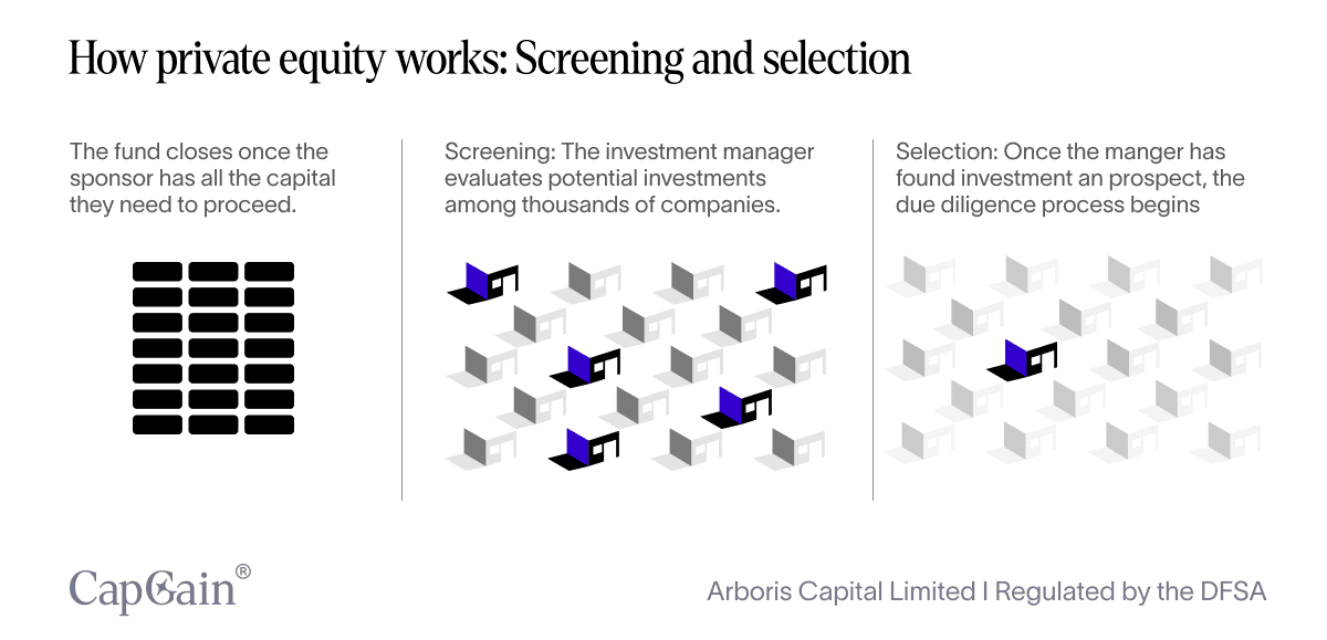 With capital pledged but not yet drawn, the GP begins sourcing potential investments—companies that align with the fund’s investment thesis. Screening helps filter out unsuitable targets, focusing on those that pass key criteria.