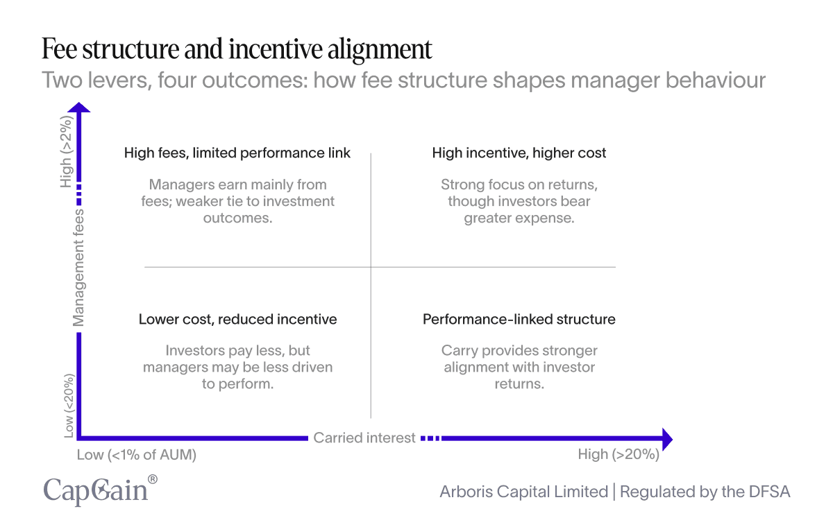 Conversely, dialling down fixed fees and emphasising carried interest—a share of the profits earned only after achieving a performance hurdle—can better align General Partner (GP) incentives with LP outcomes. In this structure, GPs are rewarded for generating real economic value. But this model isn't without risk: with their compensation tied heavily to performance, GPs may be tempted to take outsized bets, skewing toward high-return, high-risk strategies that could jeopardise capital preservation.