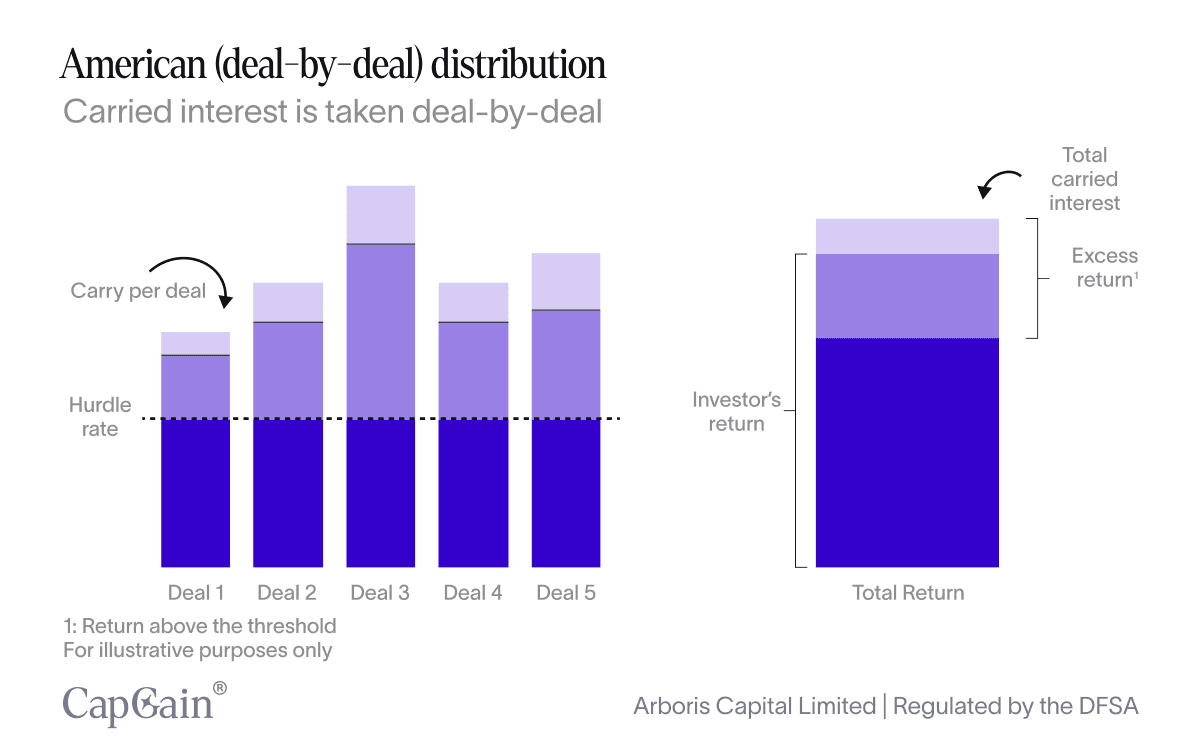 In this model, the GP can begin collecting carried interest on a per-deal basis once that specific investment generates a profit and reaches certain hurdles. This means the GP might receive carry even if other investments within the fund haven't yet returned capital to LPs.