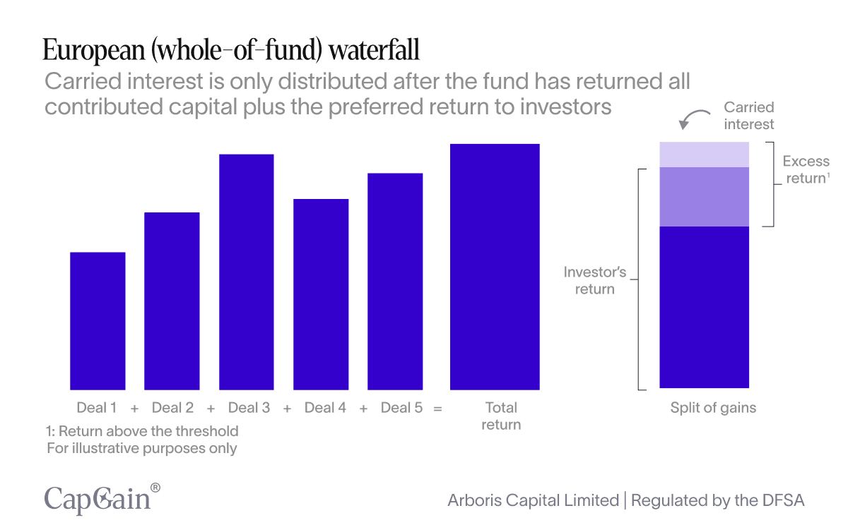 While there are variations, two common types are ‘Deal by deal’ and ‘Fund as a whole’.