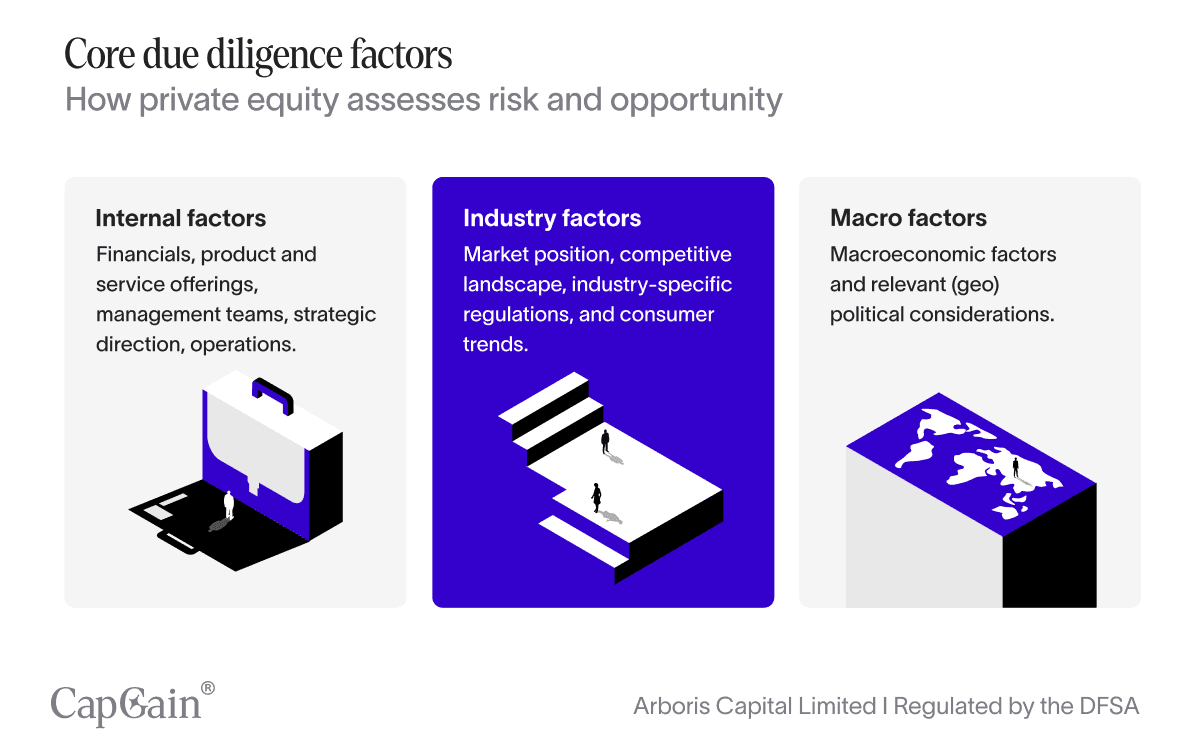 Private equity diligence goes deep: from macro conditions to industry dynamics to company-level operations, every layer of risk and opportunity is scrutinised before capital is deployed.